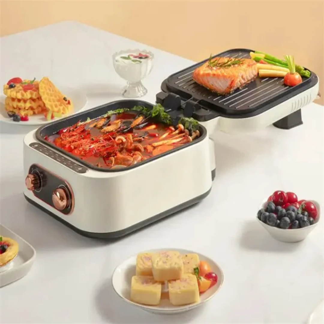 This multi-functional cooker is a game-changer for anyone who loves variety in their meals. It saves space by replacing multiple appliances and reduces cooking time by allowing you to prepare two different styles of food at once. Its stylish design and safety features make it a reliable and attractive addition to any dining table.