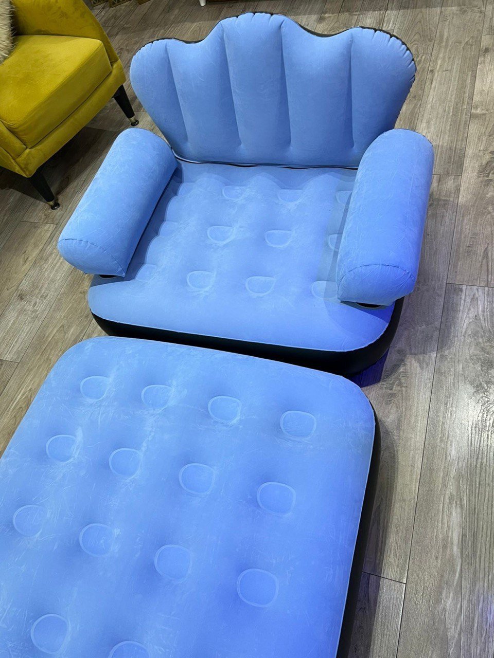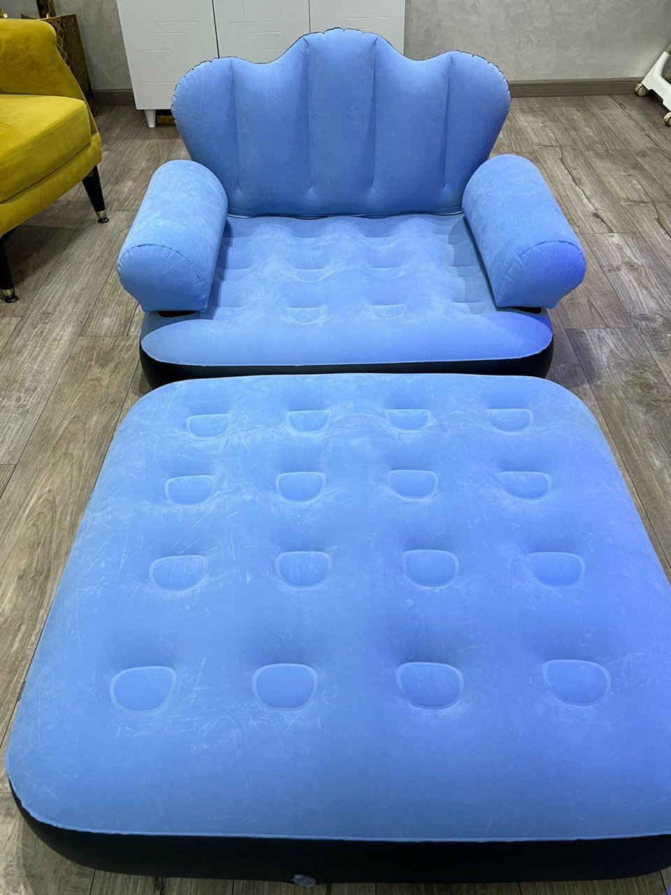 Experience the ultimate comfort and flexibility with this multifunctional 2-in-1 inflatable sofa. Designed to seamlessly transition from a stylish armchair to a relaxing daybed, this piece of furniture is the perfect solution for modern living, unexpected guests, or outdoor adventures.