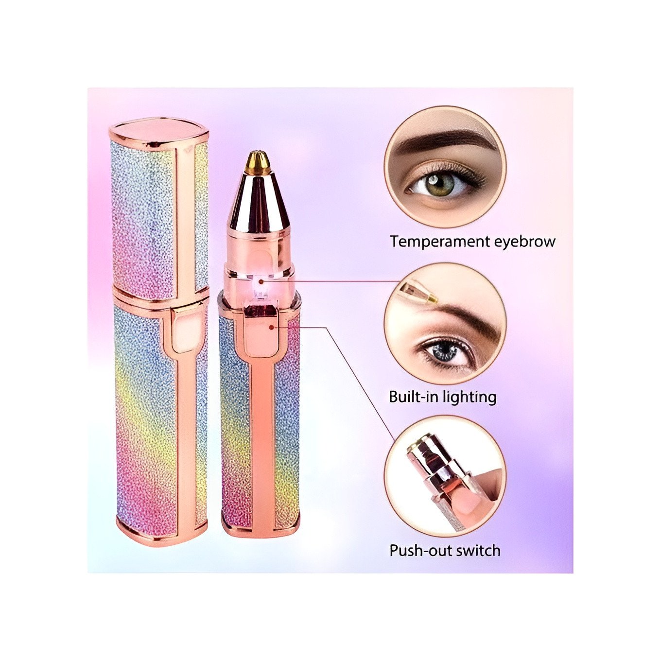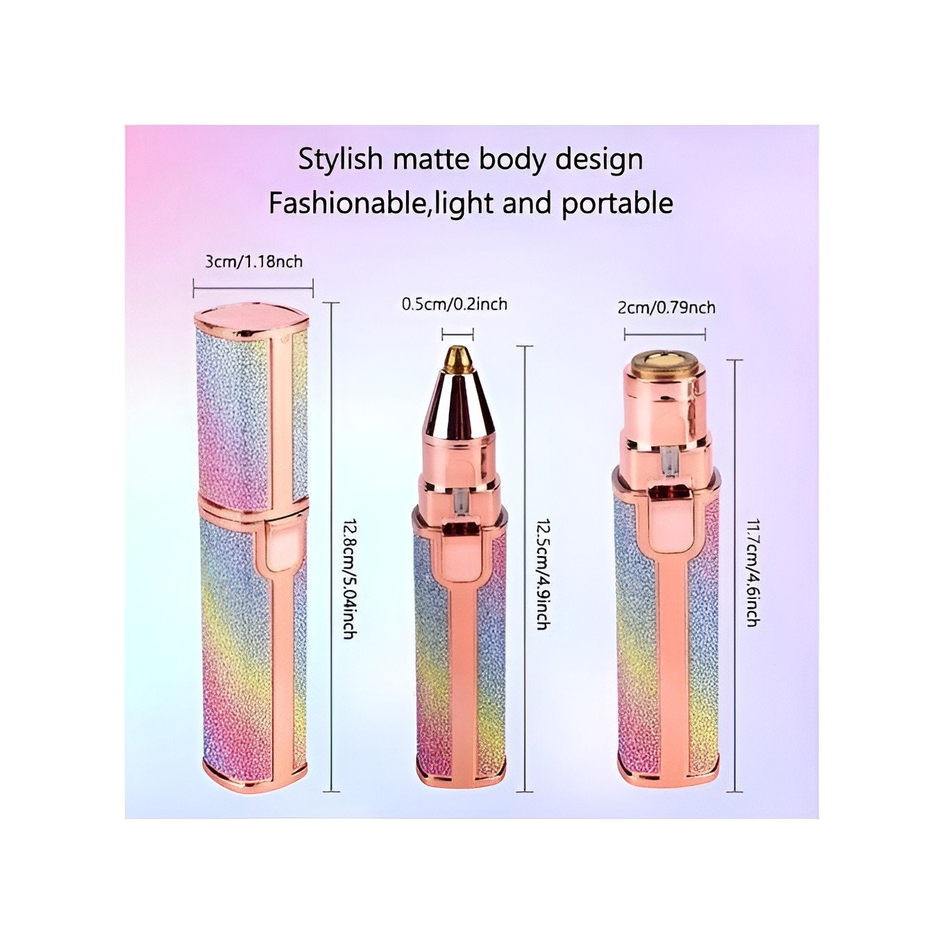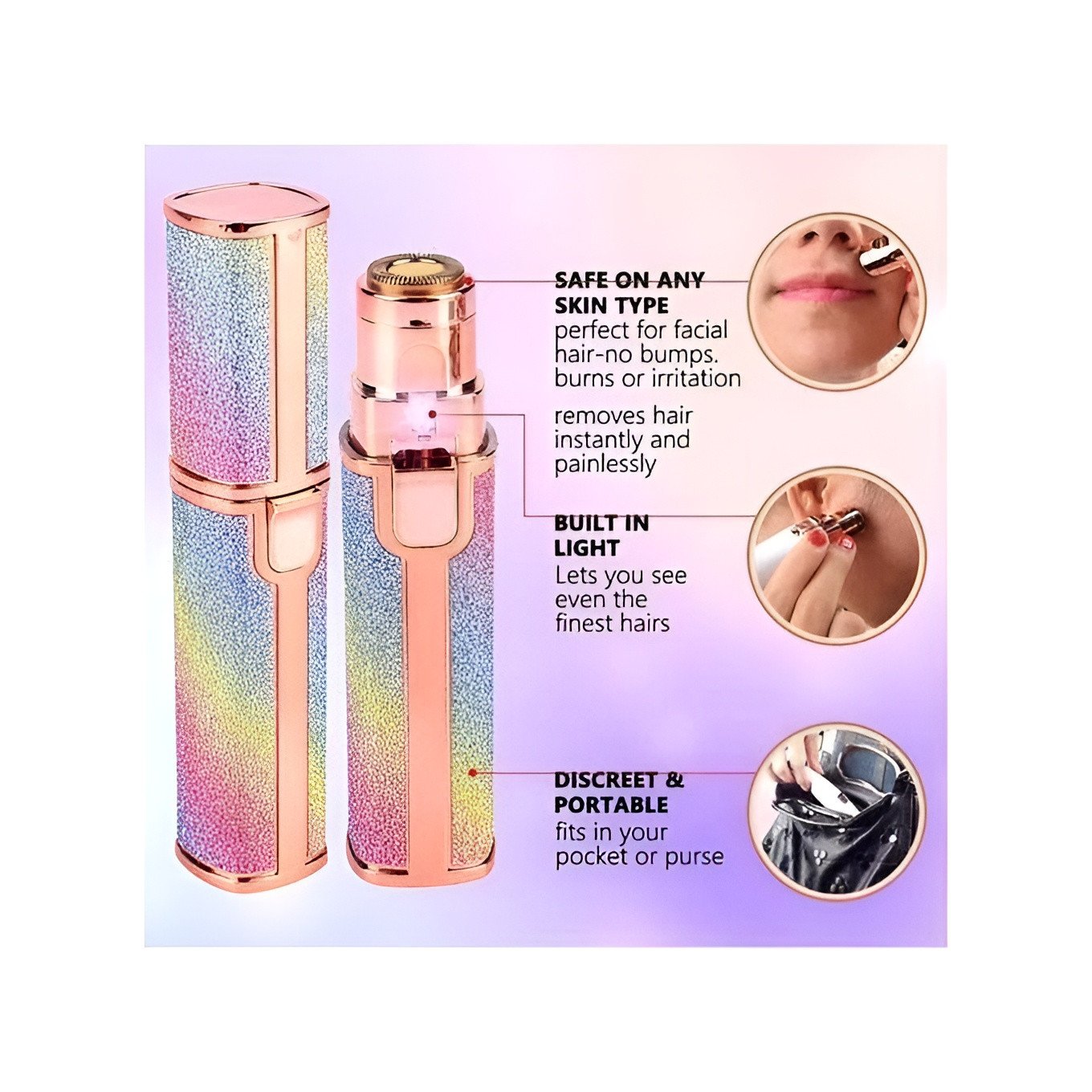Discreet and Stylish Glitter Design: Includes a compact and portable body with a vibrant rainbow glitter finish. Its lipstick-sized design fits perfectly in your pocket or purse for discreet touch-ups anywhere.