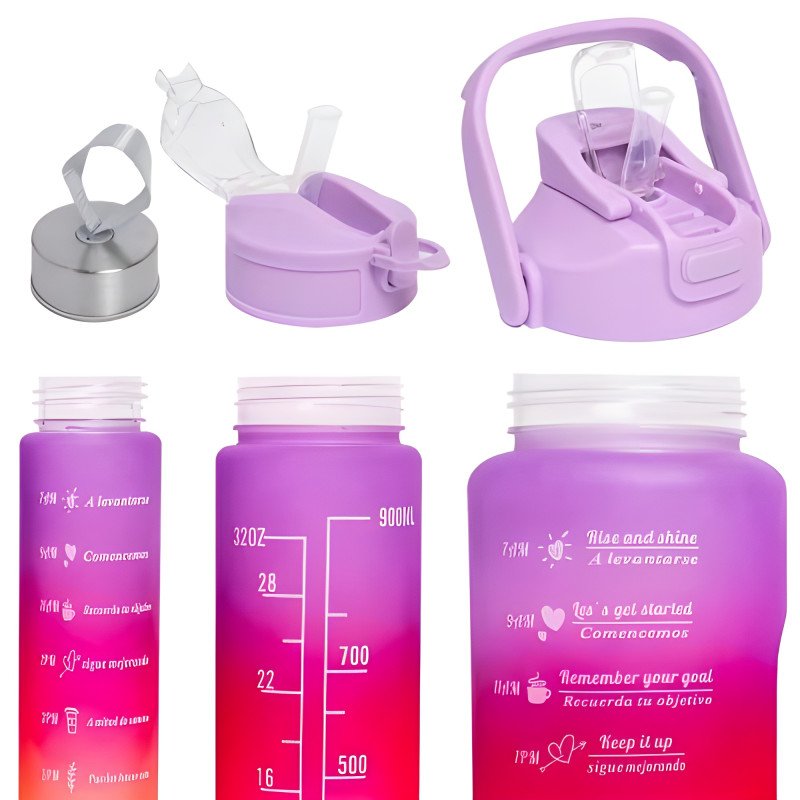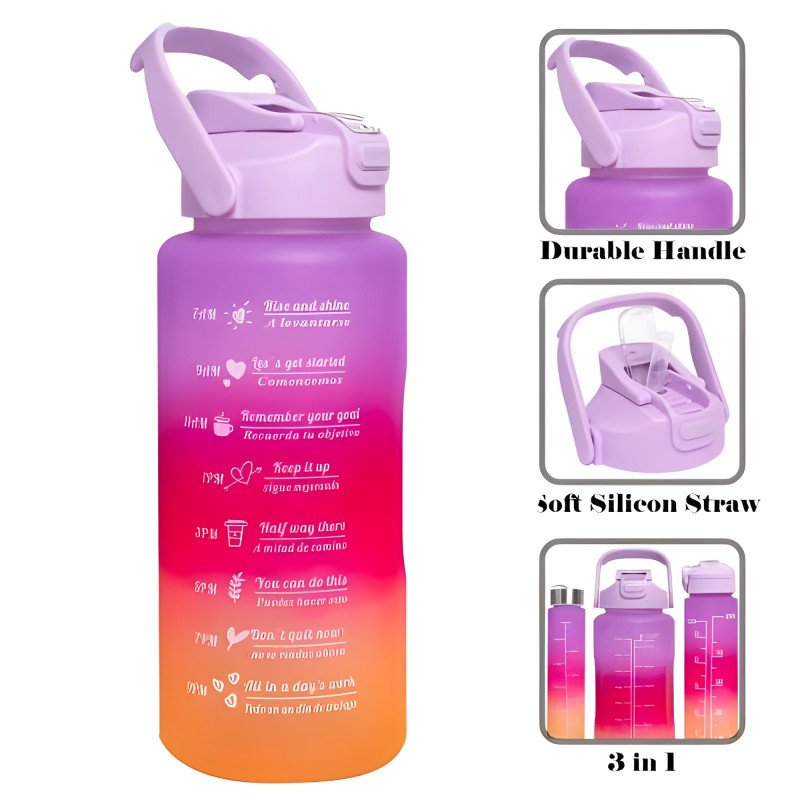 Stay hydrated and inspired throughout your day with this premium 3-in-1 motivational water bottle set. Designed for those who lead an active lifestyle, this set provides the perfect capacity for every situation, from intense gym sessions to long office hours. Featuring vibrant ombre colors and clear time markers, it acts as your personal hydration coach, reminding you to drink water and reach your daily goals.