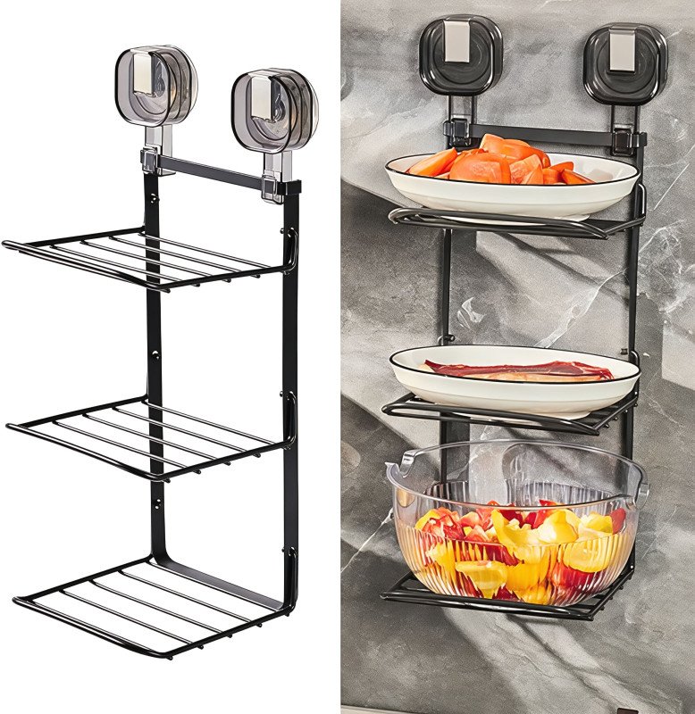 Maximize your home space with this innovative 3-tier wall organizer. Designed for versatility, this rack utilizes a powerful vacuum suction system that adheres firmly to smooth surfaces without the need for drilling or permanent hardware. Whether you are organizing kitchen essentials or bathroom toiletries, its sleek wire design ensures durability and a modern aesthetic.