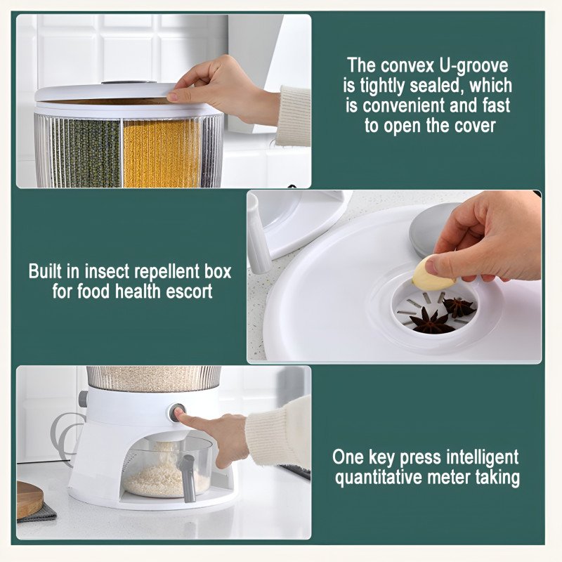 This dispenser is the ultimate solution for a tidy and efficient kitchen. It eliminates multiple bulky containers, protects your food health with its insect-repellent feature, and makes meal prep faster with its smart measurement system. It’s practical, stylish, and built to last.
