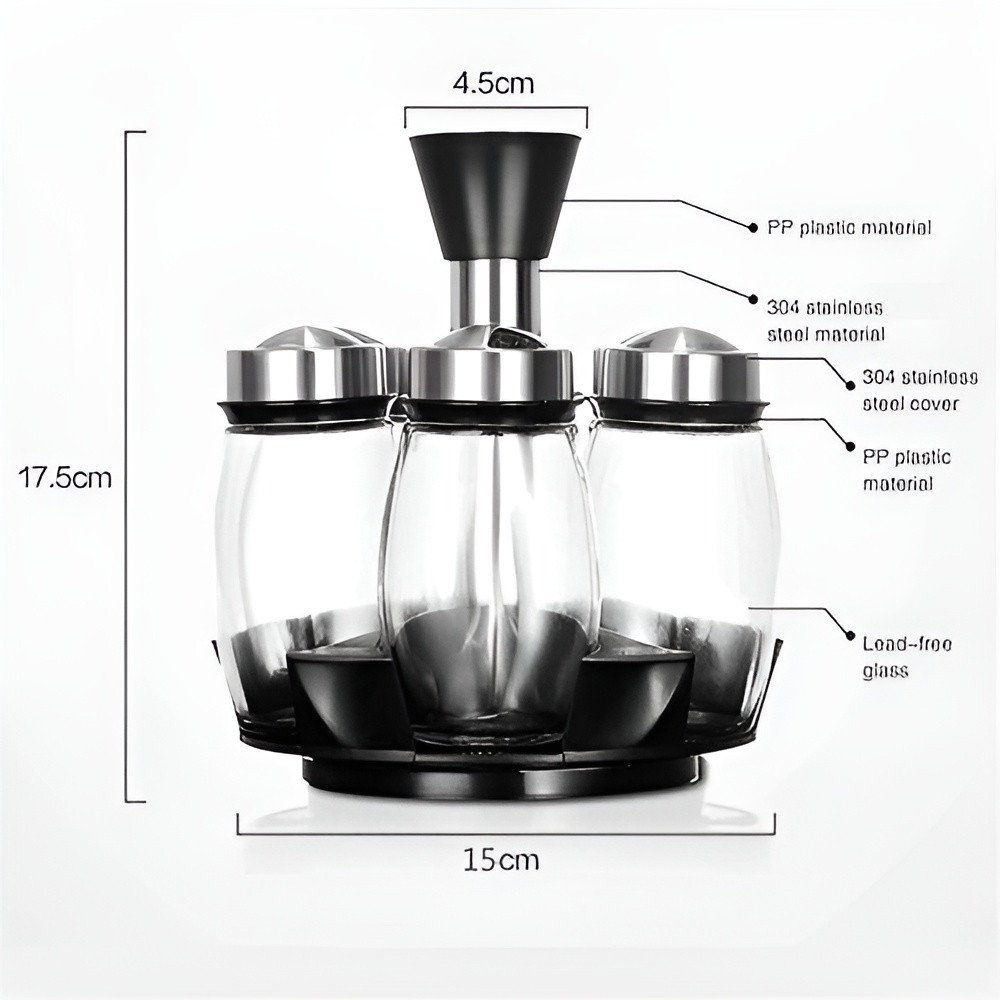 Elevate your kitchen organization with this elegant and practical 360° Rotating Spice Rack. Designed to keep your favorite seasonings, oils, and spices within easy reach, this set features high-quality glass jars arranged on a space-saving rotating base. Its modern aesthetic and functional design make it a perfect addition to any dining table or kitchen countertop, ensuring a clutter-free and professional cooking environment.