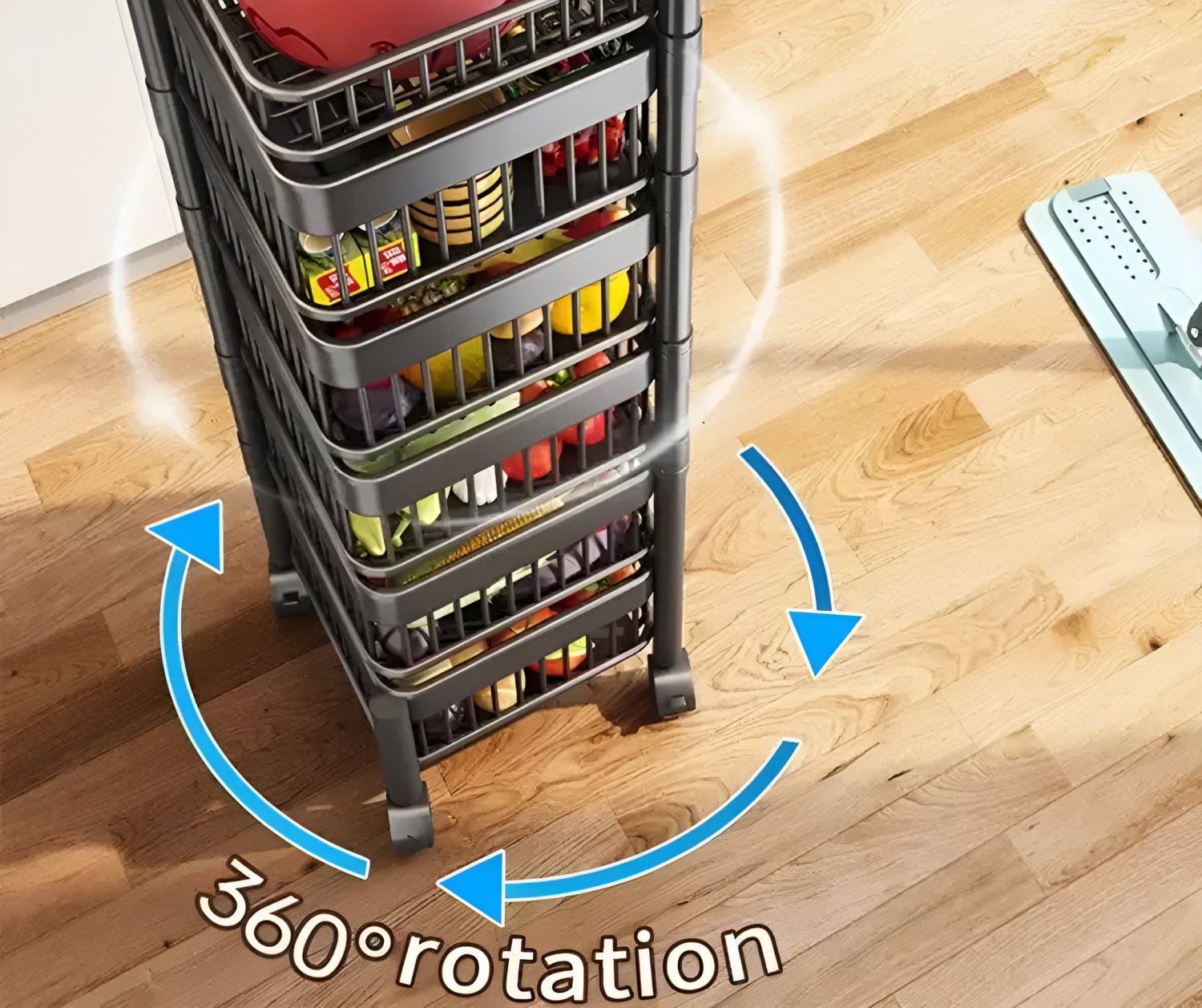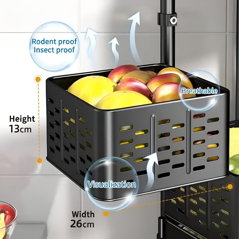 - 360° Rotating Basket Design: Each basket rotates independently, allowing you to easily see and access your vegetables, fruits, or snacks from any angle.