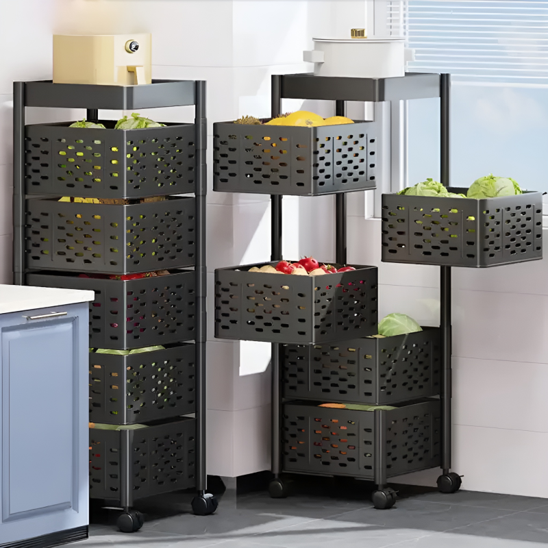 Upgrade your kitchen organization with this innovative rotating storage rack. Designed for maximum efficiency, this vertical trolley allows you to access your items with a simple swivel, making it the perfect solution for busy households looking to declutter their space while keeping essentials within reach.
