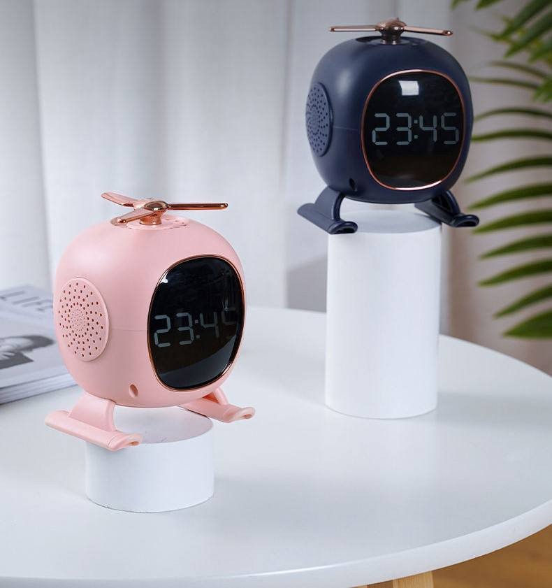 Bring a touch of modern innovation and whimsical design to your space with this 4-in-1 Helicopter Multifunctional Device. This creative gadget is not just a desktop ornament but a powerhouse of utility, combining an audio player, a timekeeper, and a mood enhancer in one sleek aviation-inspired frame. Perfect for bedside tables or office desks, it transforms your environment into a productive and relaxing sanctuary.