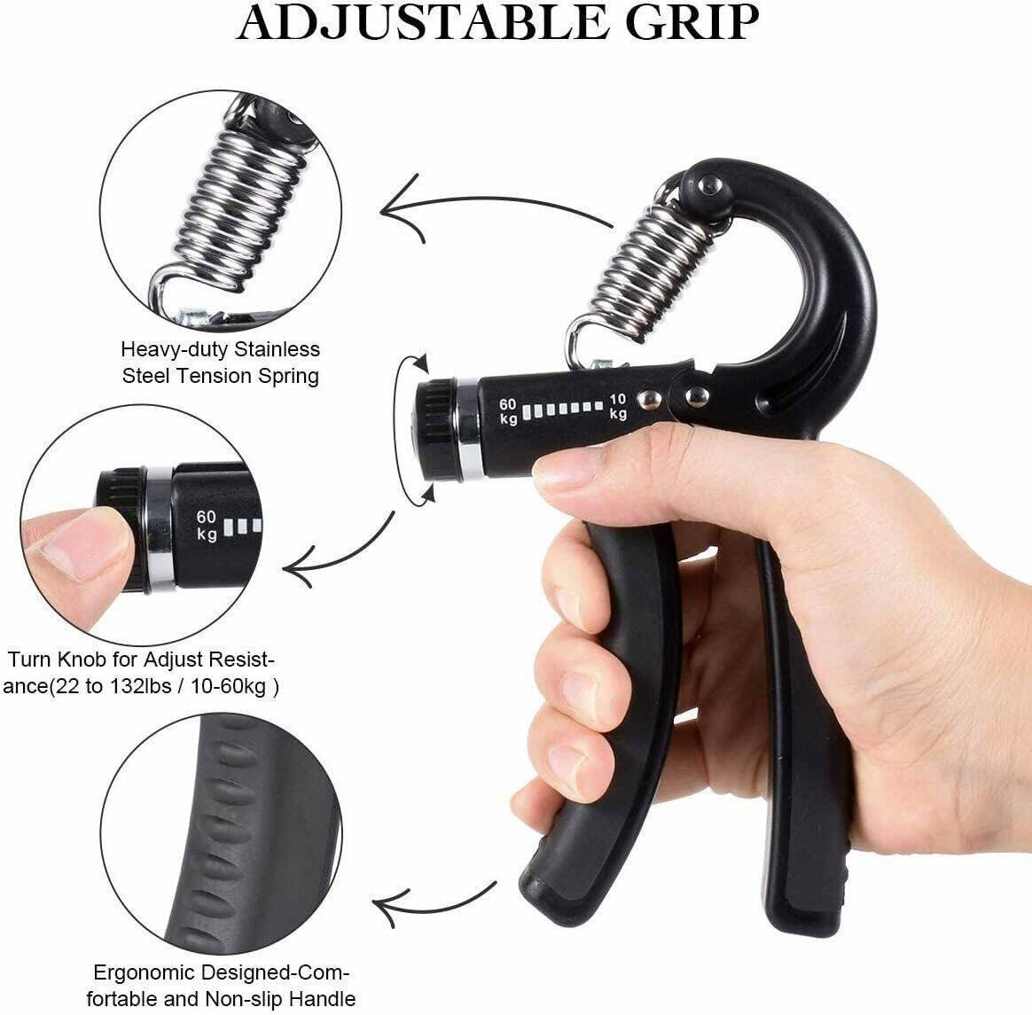- Adjustable Hand Grip Strengthener: Features a high-quality stainless steel spring with a tension dial that can be easily adjusted from 5kg to 60kg to suit your strength level.