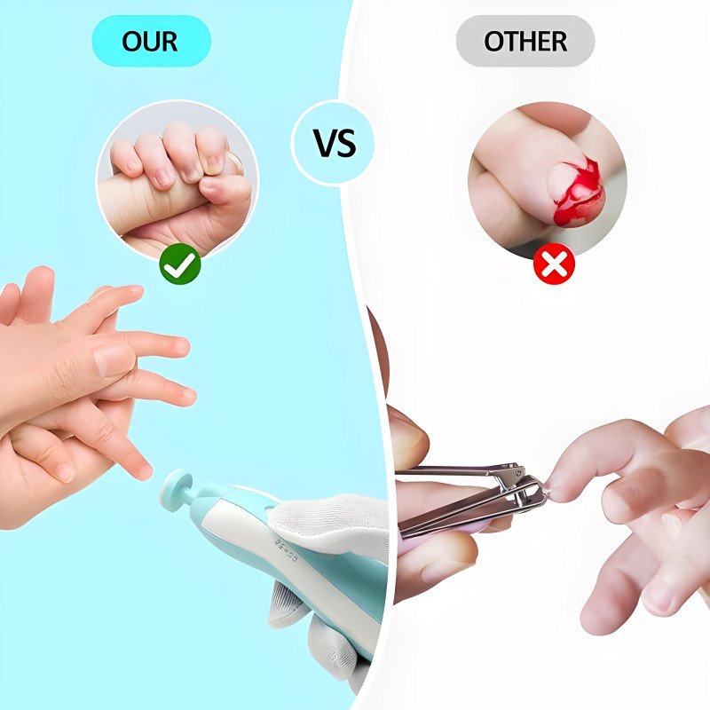 This electric nail file offers a reliable and safe solution to prevent babies from scratching their delicate faces. Unlike traditional clippers, it grows with your child, offering specialized heads for every stage of development. It is a quiet, effective, and professional-grade grooming kit that ensures peace of mind for parents and comfort for babies.