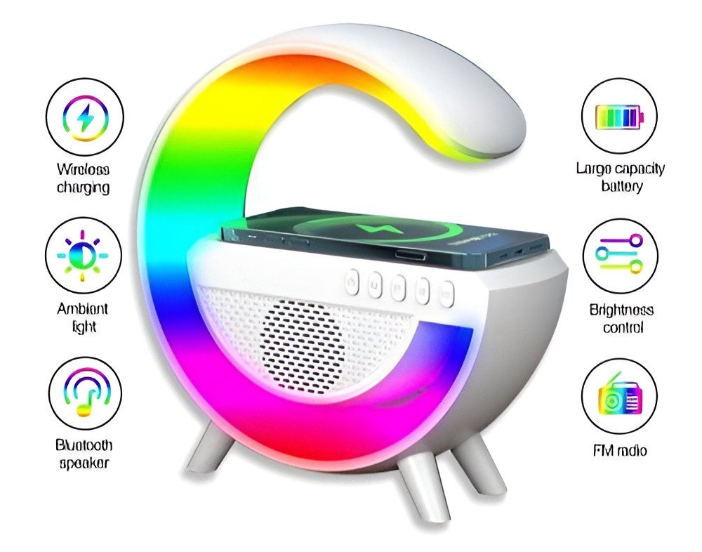 The Smart G-Lamp is the perfect all-in-one solution for a modern, clutter-free lifestyle. It replaces multiple bulky devices, a charger, a speaker, a clock, and a lamp, with one elegant, futuristic piece of decor that enhances both your room's vibe and your productivity.