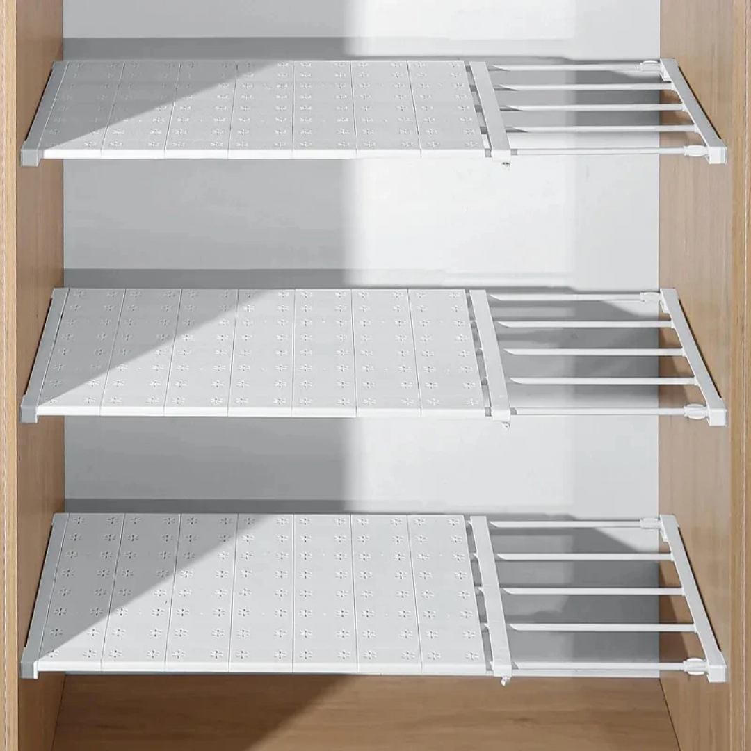 Maximize your storage potential with this innovative adjustable tension shelf. Designed for ultimate convenience, this expandable rack creates extra space in seconds without the need for drilling, screws, or permanent alterations to your home. It is the perfect solution for organizing cramped closets, kitchen cabinets, or bathroom corners while keeping your walls pristine.