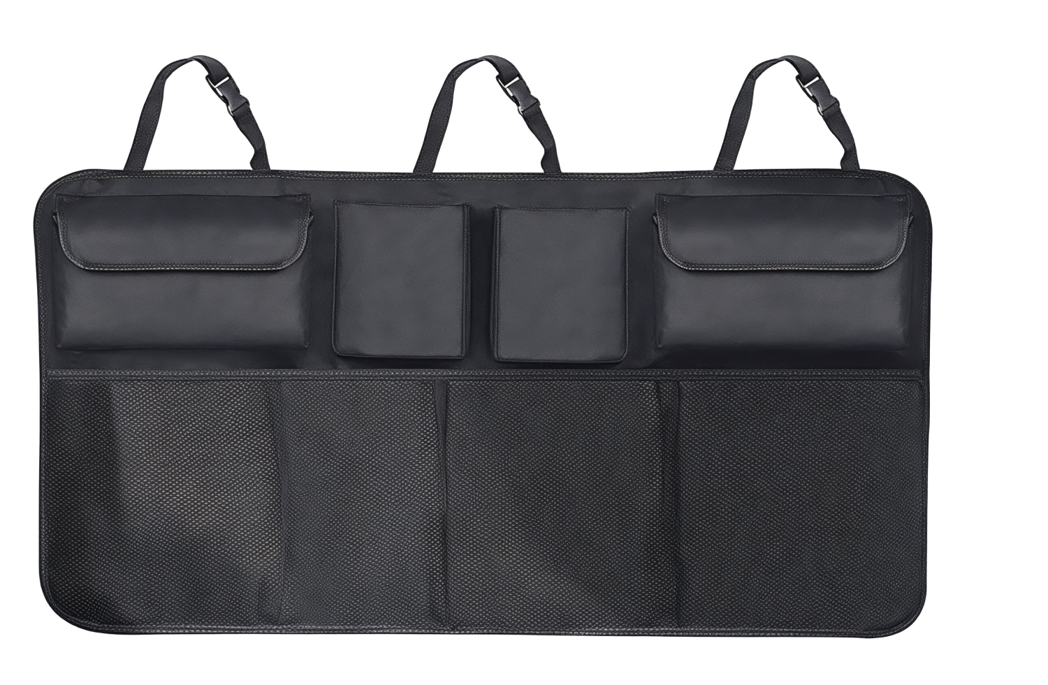 Maximize your vehicle's storage space with this premium hanging car trunk organizer. Specifically designed to attach to the rear headrests, it clears up valuable floor space in your trunk while keeping your essentials secure and within reach. Whether you are carrying cleaning supplies, emergency tools, or groceries, this organizer ensures a clutter-free journey.