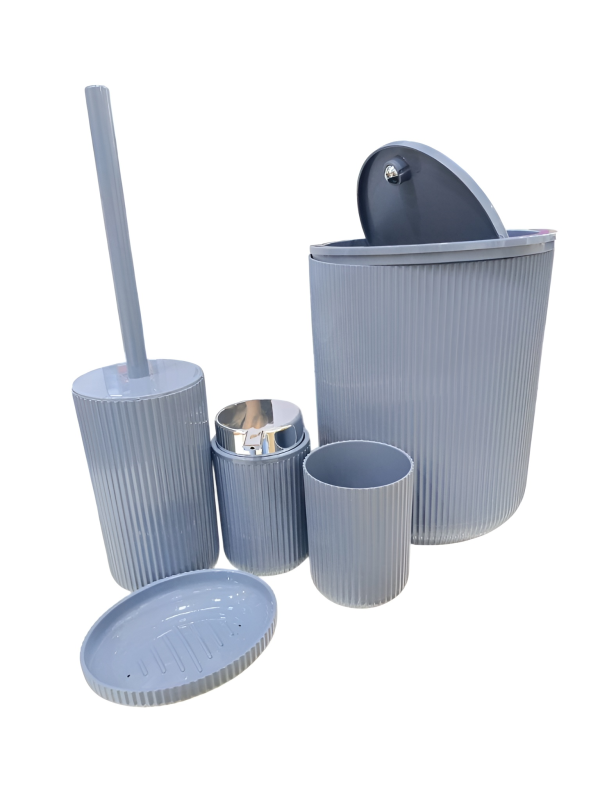 Elevate the aesthetic of your bathroom with the Carlo Bathroom Accessories Set. This set combines modern ribbed textures with practical functionality to provide a cohesive and organized look. Crafted from high-quality materials, it is designed to withstand the humid environment of your bathroom while maintaining its elegant appearance.
