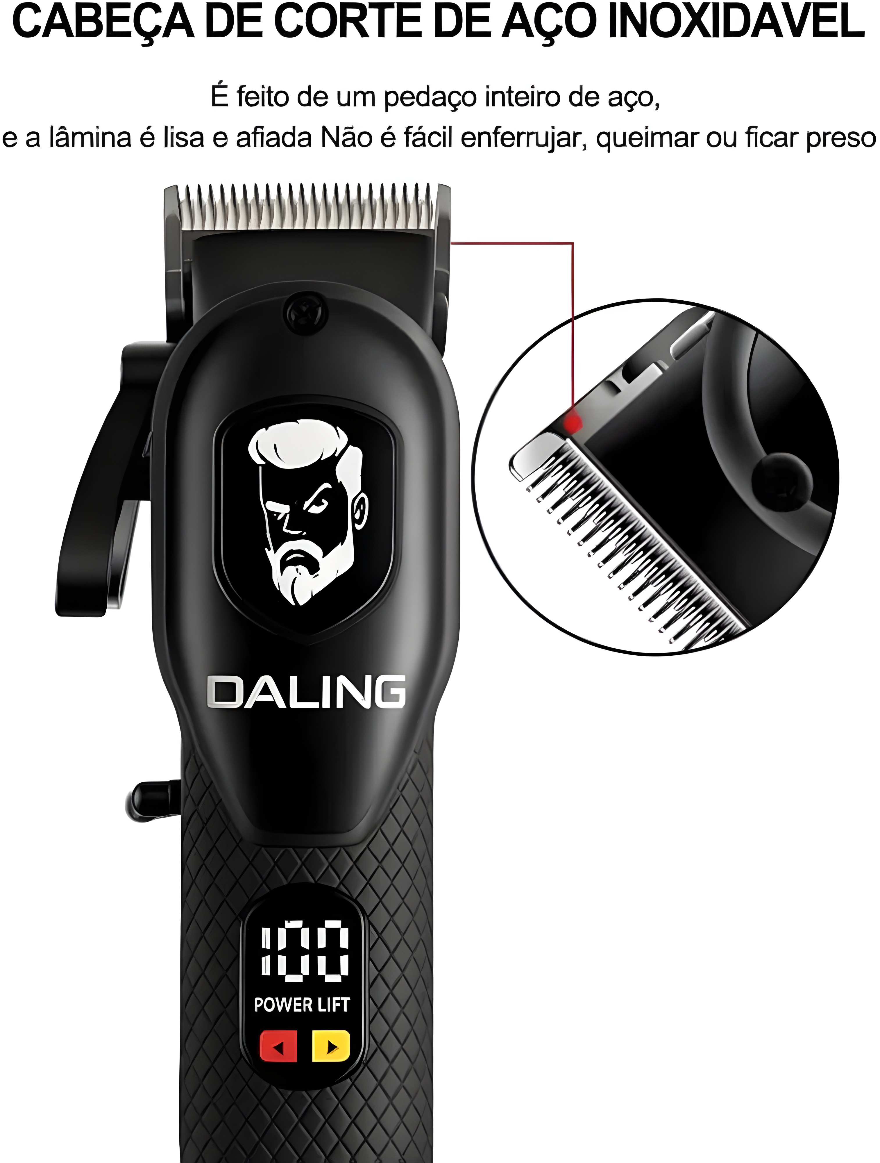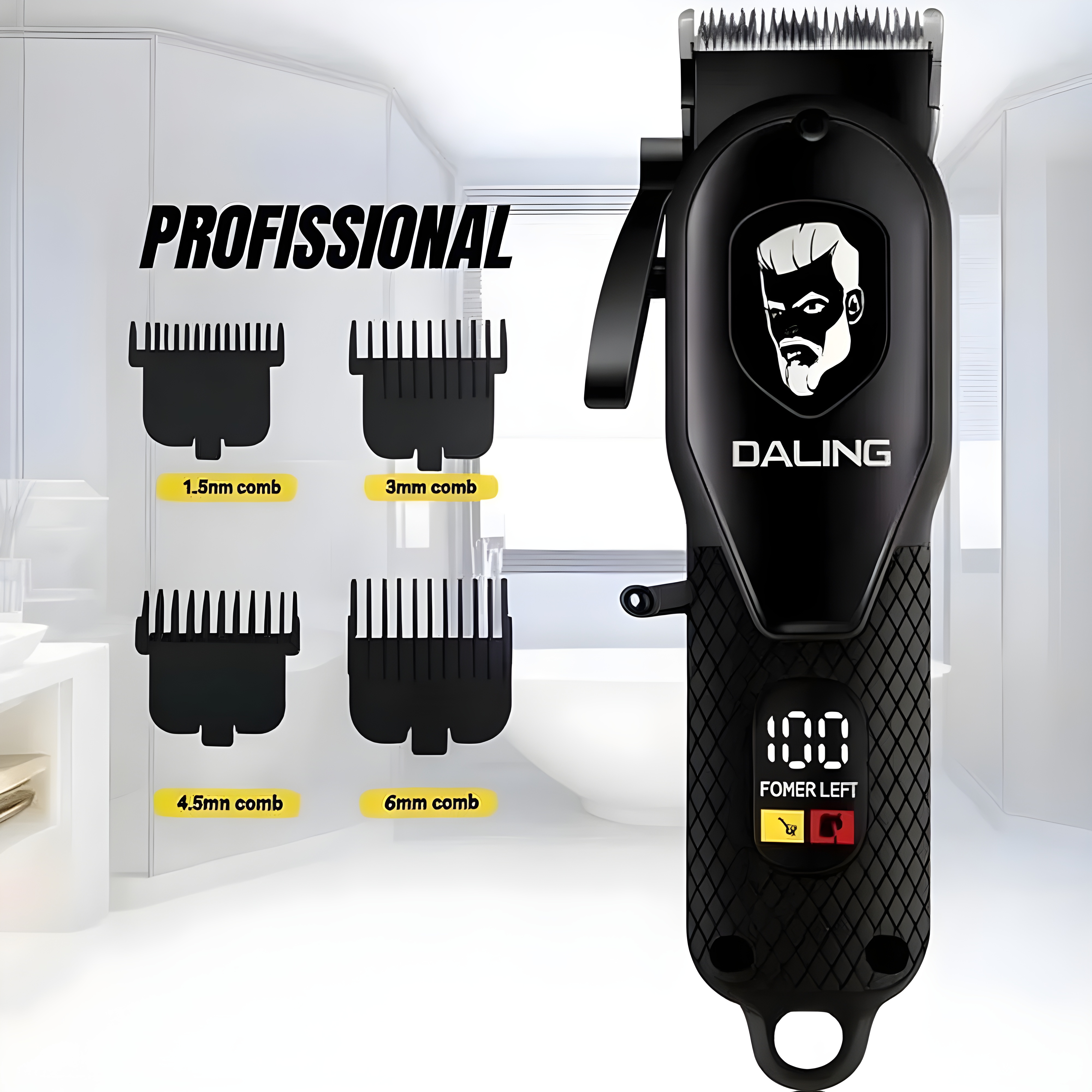 Master the art of grooming with the DALING DL-1755 Professional Hair Clipper. Designed for precision and durability, this clipper features a sleek matte black body with a textured grip for maximum control. Equipped with high-performance lithium technology and an intelligent digital display, it ensures a constant, powerful trim without irritating the skin, making it an essential tool for professional fades and home maintenance.