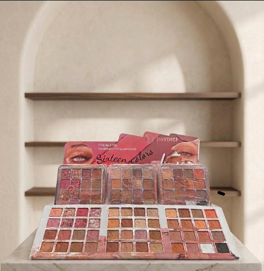 Elevate your beauty routine with the Davinci Sixteen Colors Palette collection. This premium set features three distinct palettes designed to take you from a subtle daily glow to a full high-fashion glam look. Whether you prefer romantic pinks, classic earthy tones, or bold warm oranges, this collection provides the perfect shades for every occasion and skin tone.