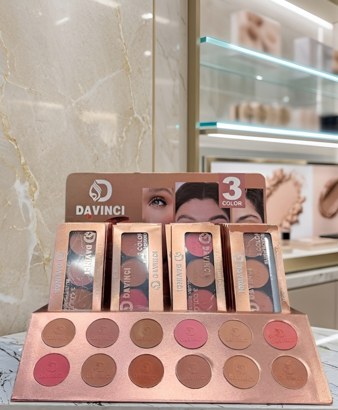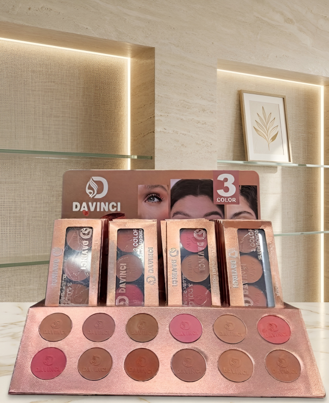 Enhance your natural glow with the Davinci 3 Color Blush Powder Palette. This expertly curated set features three complementary shades designed to add dimension and warmth to your complexion, providing a professional finish for any occasion.
