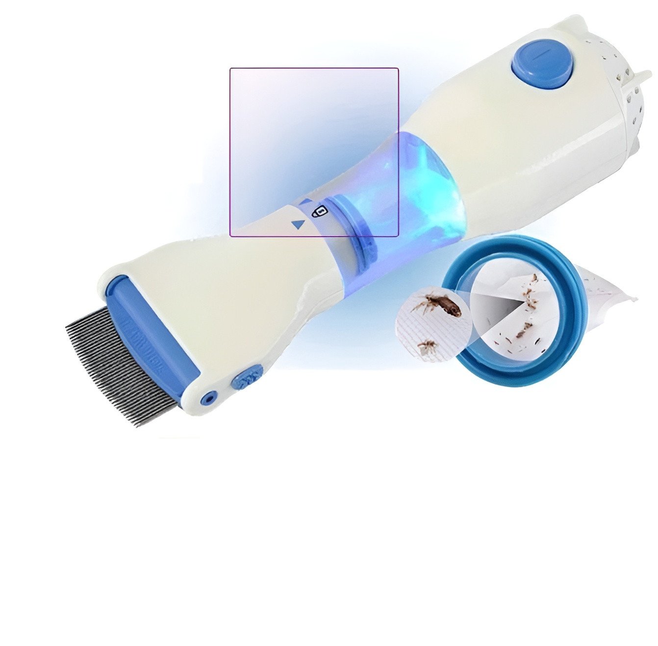 Powerful Integrated Suction: Equipped with a built-in vacuum motor that instantly pulls captured lice and eggs into a secure filter compartment for easy disposal.