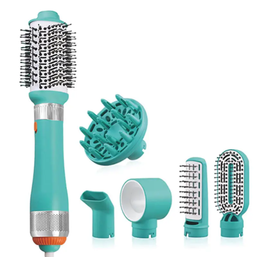 Interchangeable 6-in-1 Versatility: Features six specialized attachments, including a high-volume oval brush, a diffuser for natural curls, and precision nozzles for tailored styling.