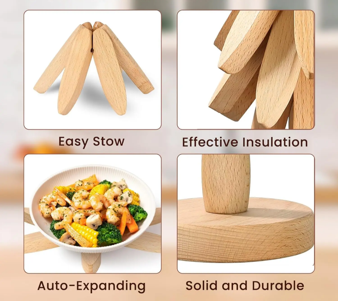 - Anti-Slip and Surface Protection: The smooth wooden finish ensures no scratches on your delicate surfaces while providing a steady base for your cookware.