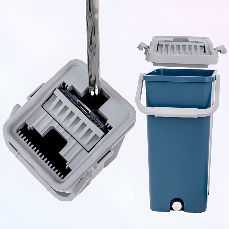 Experience a faster and more hygienic way to clean your home with the Professional Hands-Free Flat Mop System. This all-in-one set features a sleek blue double-barrel bucket that allows you to wash and dry your mop pad in seconds without ever touching dirty water. The slim, low-profile mop head reaches deep under furniture and into tight corners, making it perfect for hardwood, tile, and laminate floors.