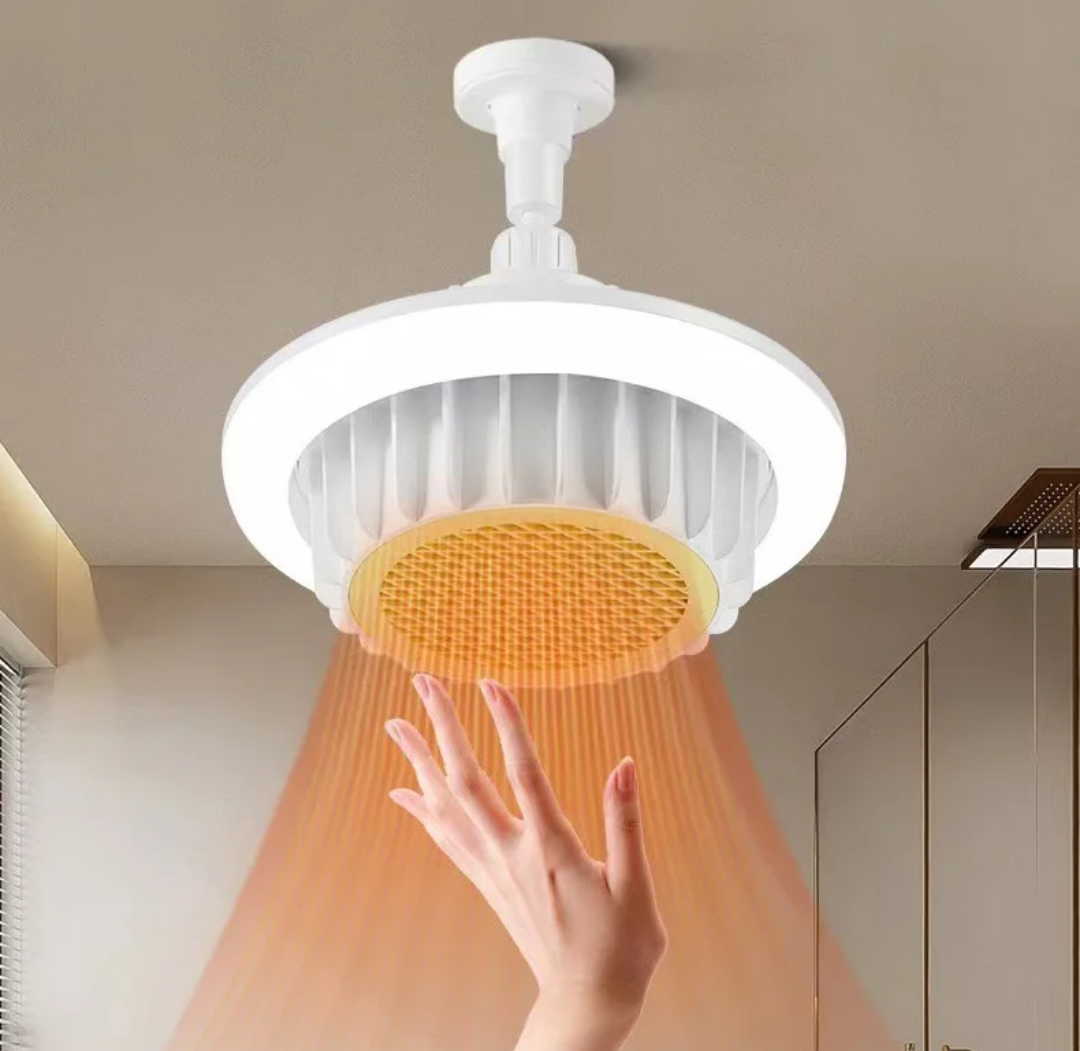 Experience a new level of home comfort with the Heating Fan Light+. This innovative 2-in-1 device combines a powerful space heater with a bright LED ceiling light, all designed to fit into a standard E27 bulb socket. It provides efficient downward warmth while illuminating your room with customizable light colors, making it an ideal space-saving solution for bathrooms, small rooms, or offices.