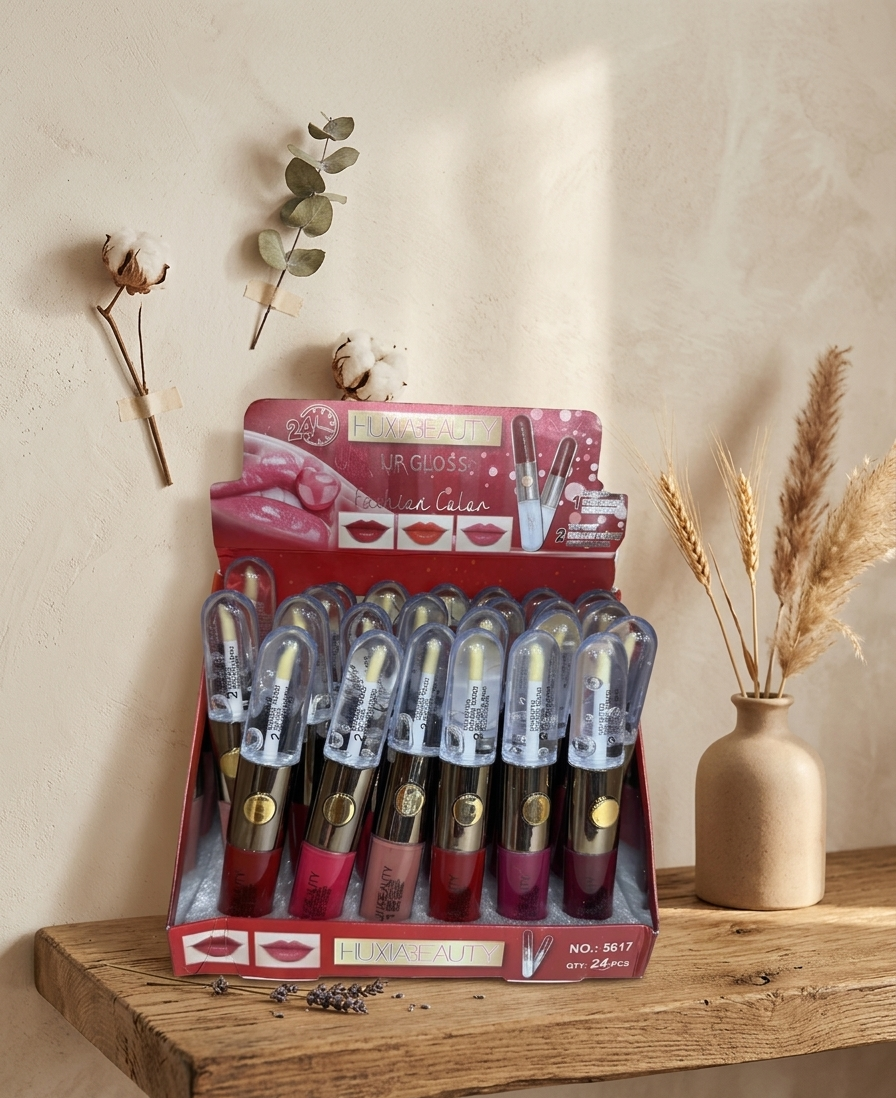 Experience the ultimate lip transformation with the HUXIABEAUTY Double Touch Liquid Lipstick. This innovative two-step system combines a high-pigment base color with a crystal-clear top coat to deliver a stunning, smudge-proof finish that lasts all day. Whether you prefer a soft shimmer or a bold fashion statement, this 24-piece professional set offers a versatile range of shades to suit every mood and occasion.