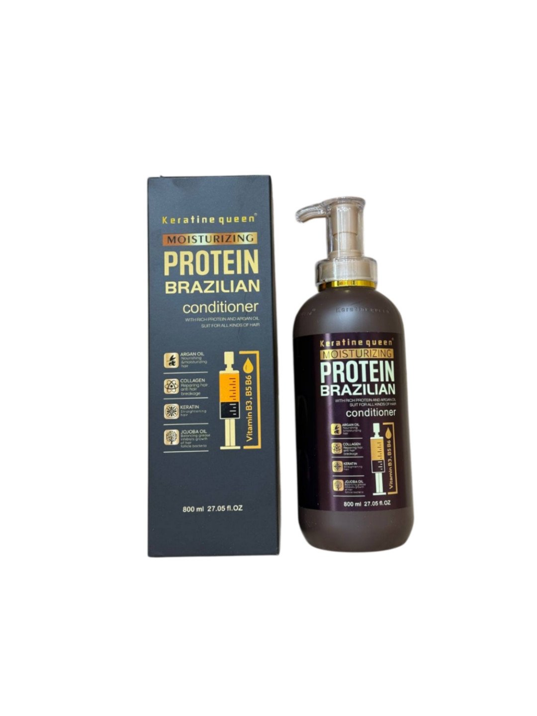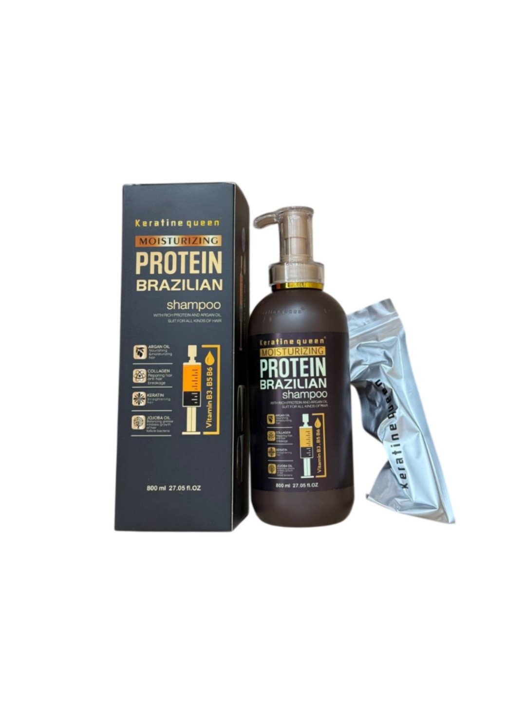 Experience the ultimate hair transformation with the Keratine Queen Moisturizing Protein Brazilian set. This professional-grade collection is specifically formulated to breathe life back into dry, damaged. Infused with a powerful blend of Argan oil, Collagen, and Keratin, it provides a comprehensive solution for salon-quality results at home.