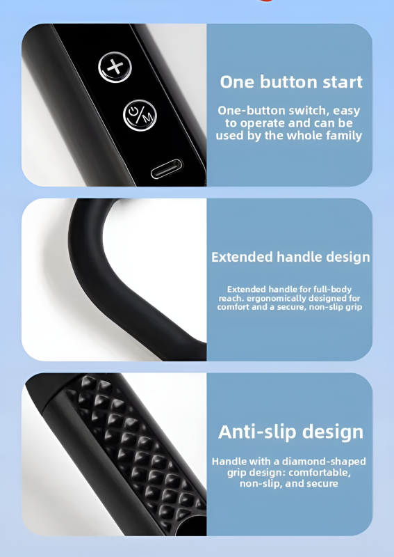 This massager stands out due to its practical design that solves the problem of reaching the back. It combines professional power with home convenience, making it an essential recovery tool for athletes and anyone suffering from daily muscle stiffness.