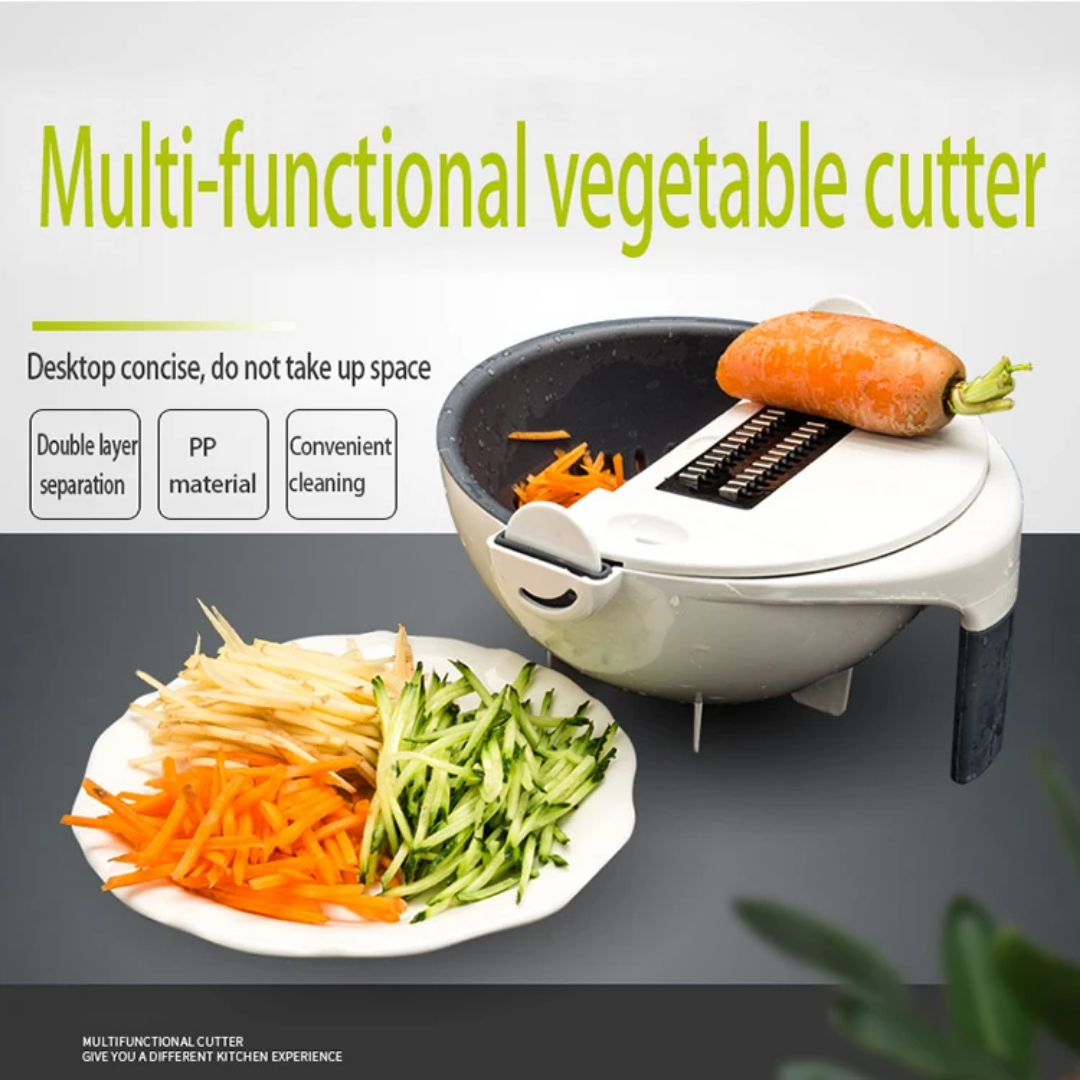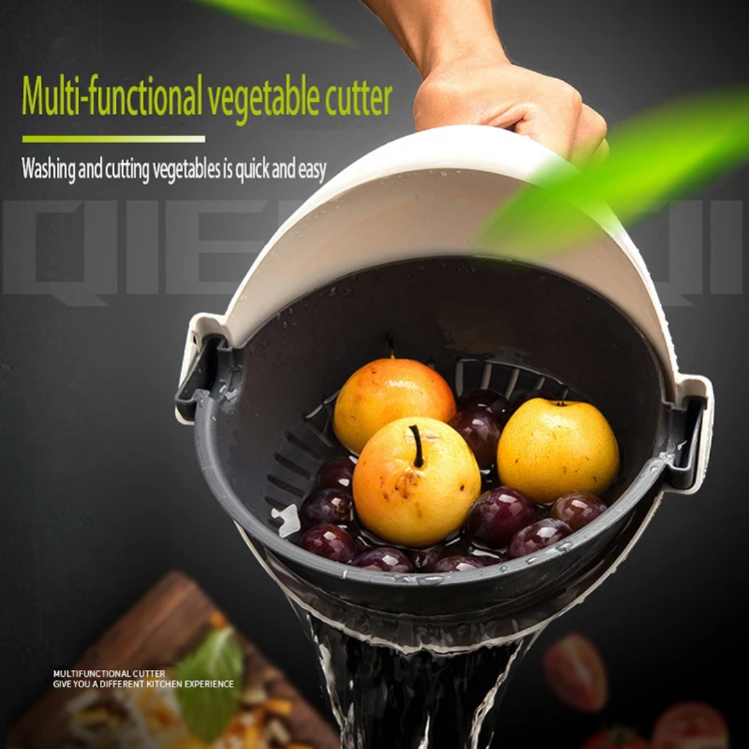 Upgrade your kitchen experience with this innovative Multi-Function Vegetable Cutter. Designed to simplify your meal prep, this versatile tool combines a high-quality slicer, a grater, and a unique rotating drain basket. Whether you are slicing cucumbers, grating carrots, or washing greens, this all-in-one gadget ensures a mess-free and efficient process, keeping your kitchen organized and your hands safe.