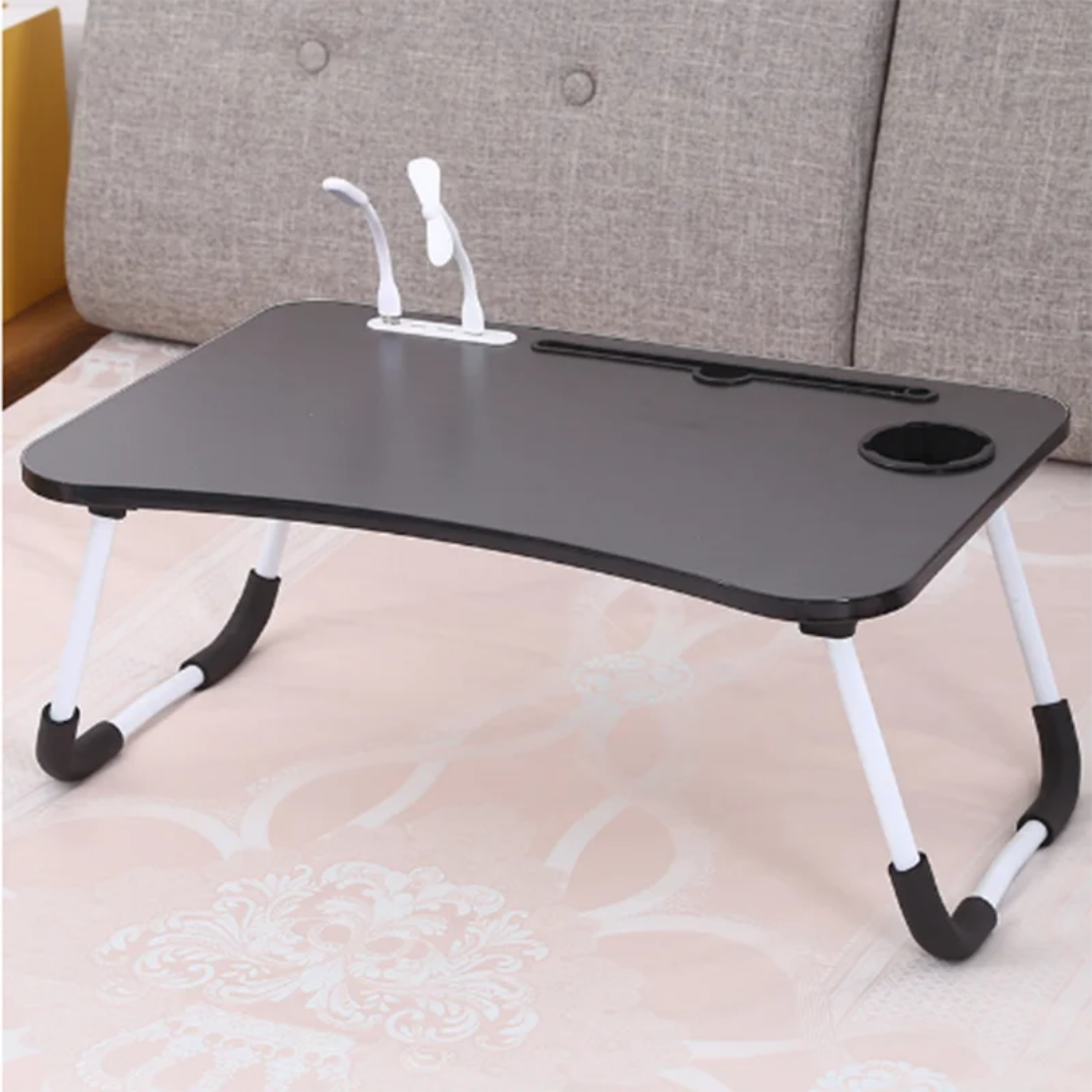 Transform any space into a comfortable workstation with this versatile foldable laptop desk. Perfect for use on the bed, sofa, or even the floor, this table provides a stable and spacious surface for your laptop, tablet, or books. Its ergonomic design ensures a comfortable posture while working, studying, or enjoying a meal, making it an essential accessory for students, remote workers, and anyone who values convenience and comfort.