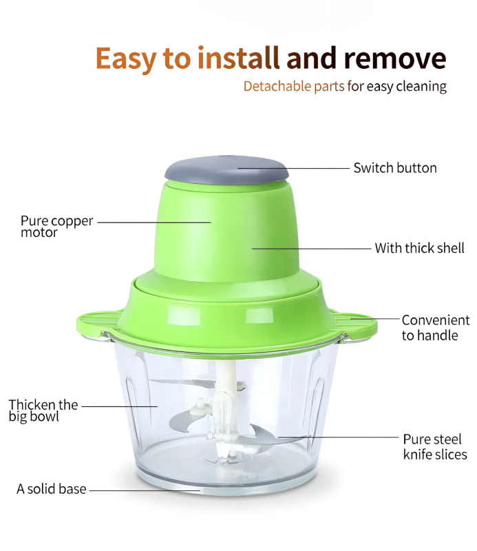 Experience the power of professional meal prep with the Multi-Functional High-Speed Electric Food Chopper. This robust kitchen machine is engineered to handle a wide variety of tasks, from mincing meat to pureeing vegetables, allowing you to create delicious, homemade meals quickly and happily.