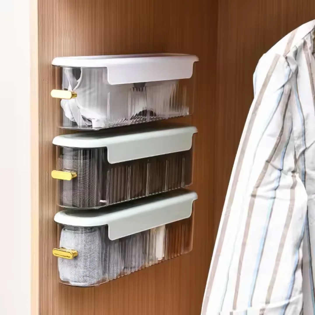 Maximize your vertical space and declutter your home with this sleek wall-mounted hanging drawer organizer. Designed to fit seamlessly into narrow spaces, this versatile storage solution is perfect for closets, walls, or even inside cabinets. Whether you are looking to tidy up your bedroom, bathroom, or kitchen, this organizer provides a modern and practical way to keep your small essentials within reach and neatly displayed.