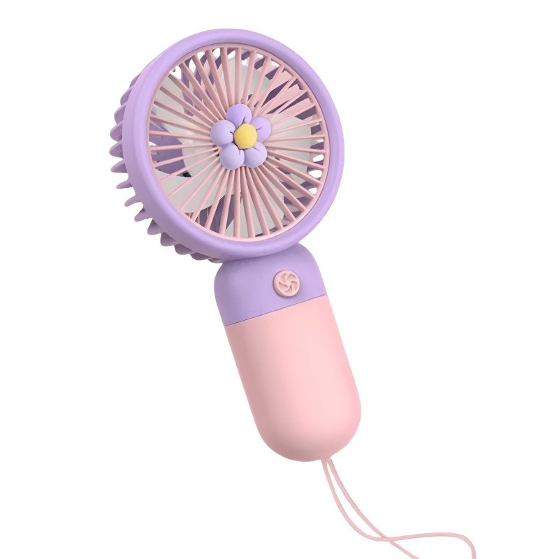 Beat the heat wherever you go with this versatile 2-in-1 mini fan. Designed for both style and functionality, this compact device serves as a powerful handheld cooler for outdoor use and a stable desktop fan for your workspace. Its charming design and vibrant colors make it a delightful accessory for any setting.