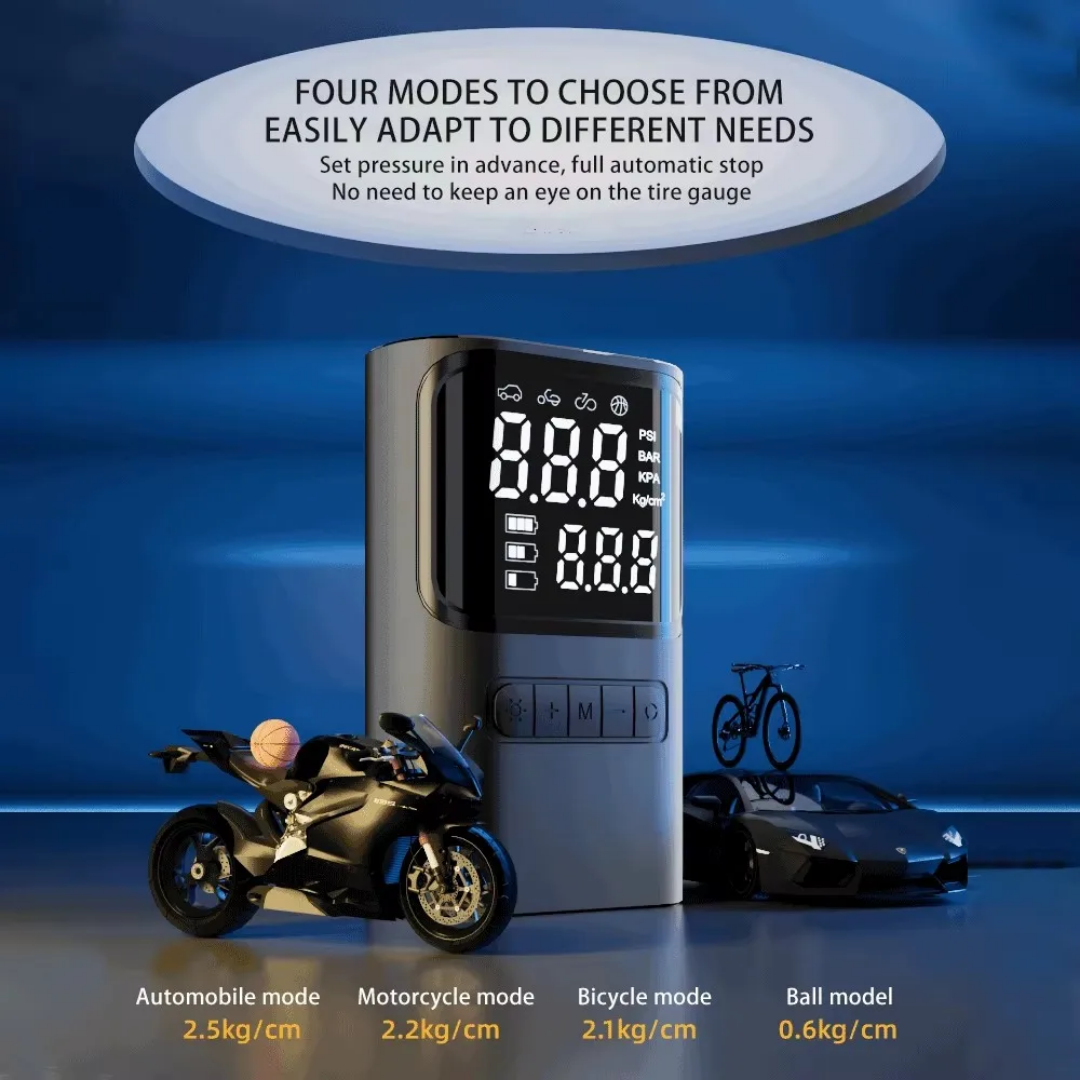 This electric air pump is an essential tool for every driver and cyclist. It eliminates the need for manual pumping and provides a faster, safer way to maintain tire health. Its high-tech features combined with a portable design make it a professional-grade accessory for both daily use and long-distance travel.