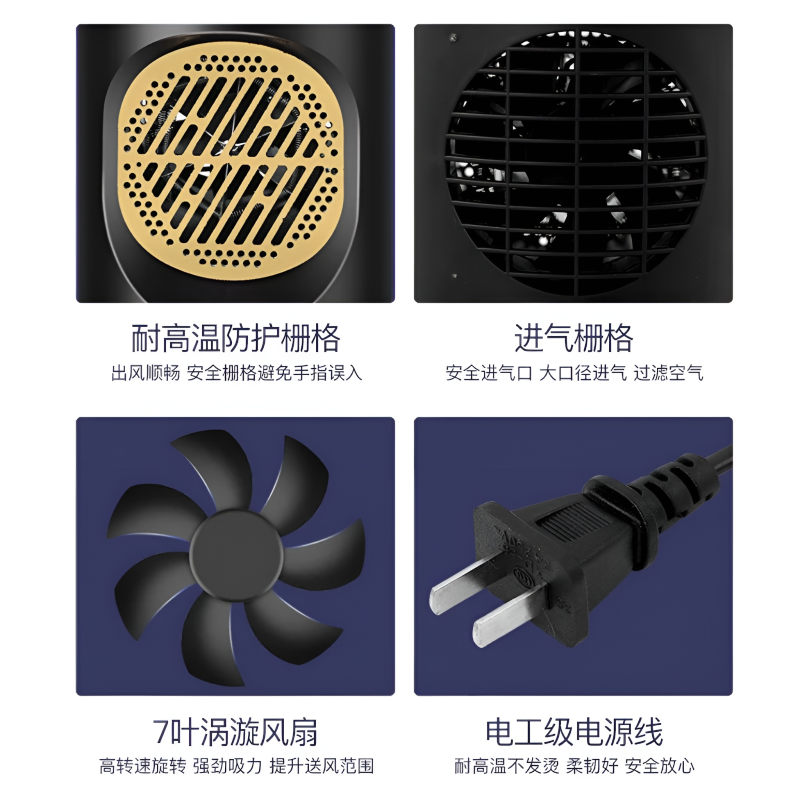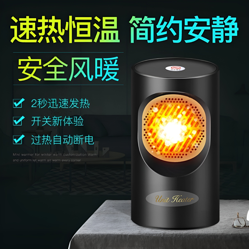 Keep your personal environment cozy and warm with the Portable Mini Heater. This sleek, compact device is engineered to provide fast and efficient heat for small spaces. Its minimalist black design with a golden protective grille makes it a functional yet aesthetic addition to any room, ensuring you stay comfortable during chilly days without the need for large, space-consuming radiators.