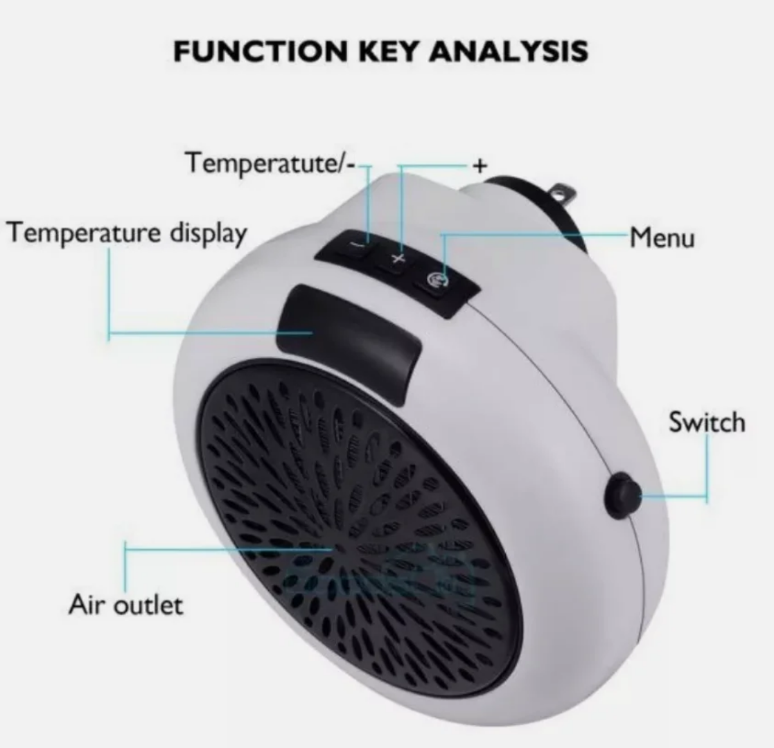 Transform any cold spot into a warm and cozy space with this innovative wall-outlet handy heater. This space-saving device eliminates messy cables by plugging directly into the socket, delivering powerful and efficient heat exactly where you need it, from your office desk to your bedside.