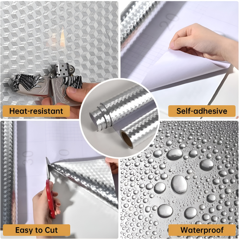 This aluminum sticker is an essential tool for every modern home. It offers a cost-effective and practical way to renovate your kitchen aesthetics while providing heavy-duty protection for your furniture against wear and stains.