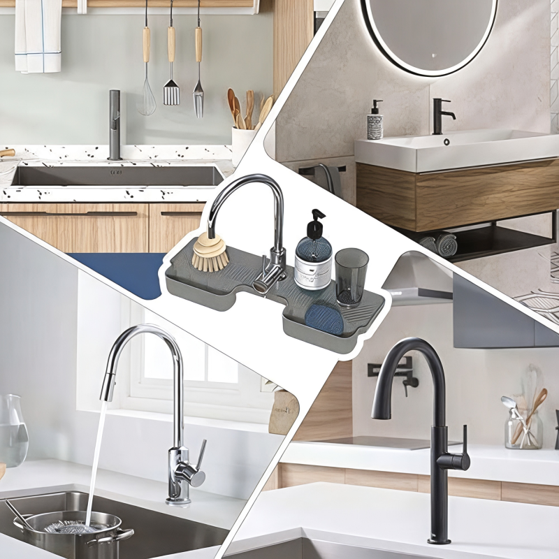 Keep your sink area spotless and dry with this innovative Silicone Faucet Drain Pad. Designed to fit around the base of your faucet, it acts as a smart drainage system that directs water splashes back into the sink, preventing messy puddles and limescale buildup on your countertops.