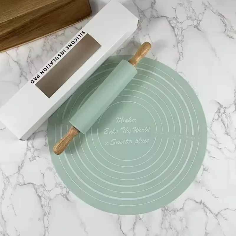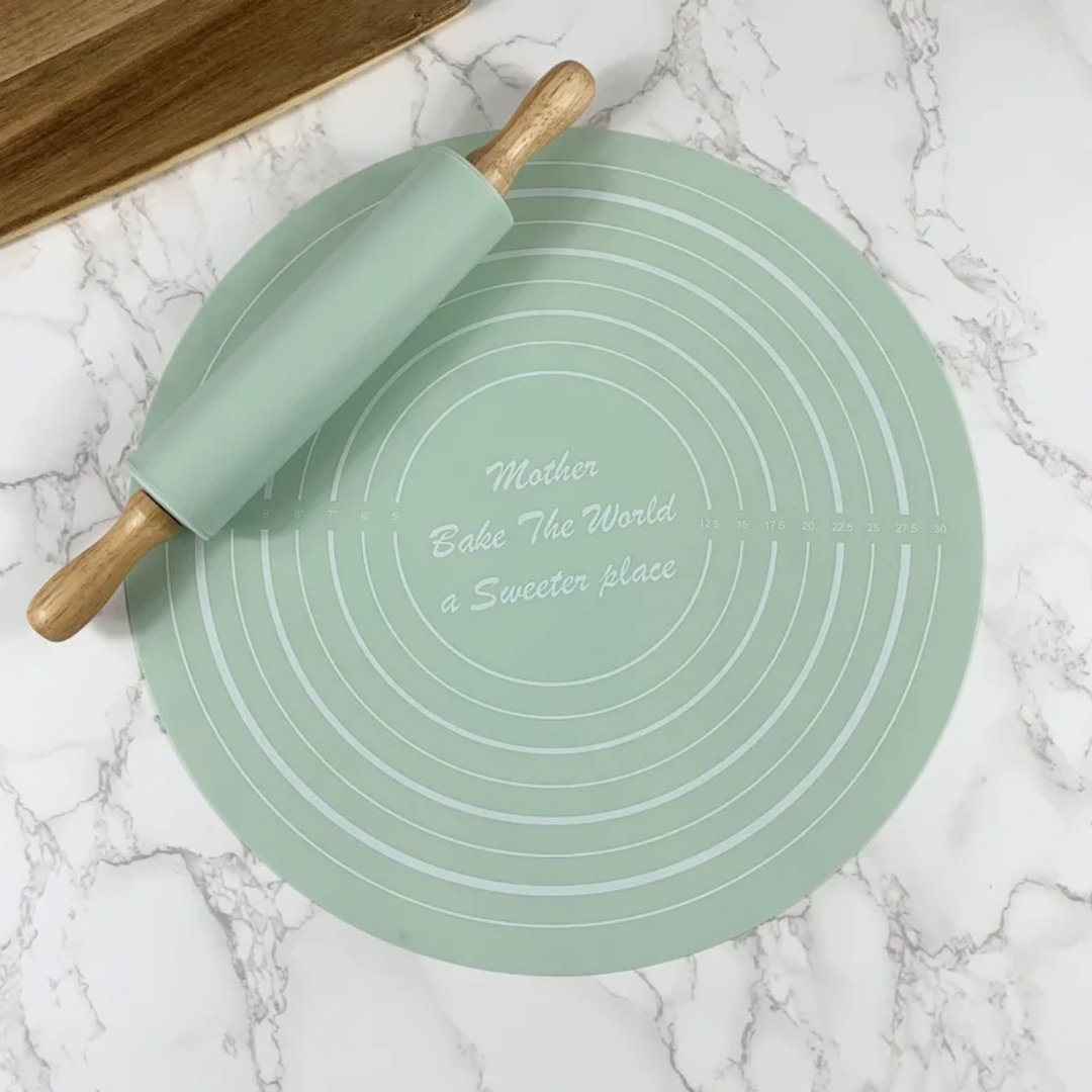 Elevate your baking experience with this premium silicone baking set, featuring a rolling pin and a professional pastry mat. Designed for precision and comfort, the mat includes circular measurement guides to help you achieve the perfect size for pizzas, pies, and pastries every time.