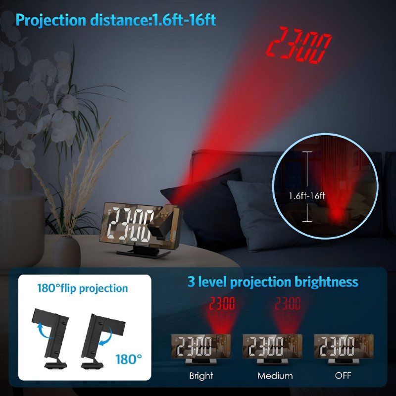 This clock is the ultimate companion for a modern lifestyle. It eliminates the frustration of searching for your phone or squinting at a traditional clock in the dark. Its versatility as a mirror, thermometer, and projector makes it a space-saving and stylish addition to any bedroom or office.