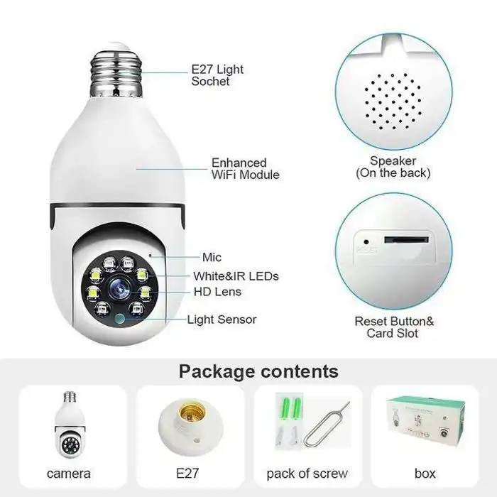 - Plug-and-Play Installation: Fits directly into a standard light bulb socket, making it the easiest security solution for homes, offices, or warehouses.
