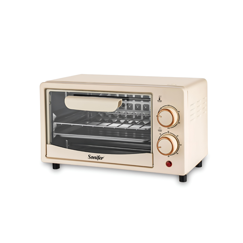Elevate your kitchen experience with the Sonifer SF4042 Electric Oven. Designed to blend efficiency with a sophisticated aesthetic, this appliance delivers professional cooking results in a streamlined form. Its exquisite cream finish paired with elegant gold accents makes it a stylish centerpiece for any modern countertop.