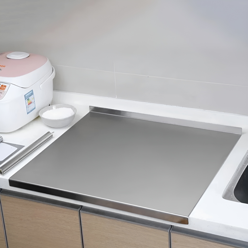 This stainless steel board is the ultimate solution for a professional kitchen environment. By providing a durable, easy-to-clean, and stable surface, it ensures that food preparation is faster and more stylish.