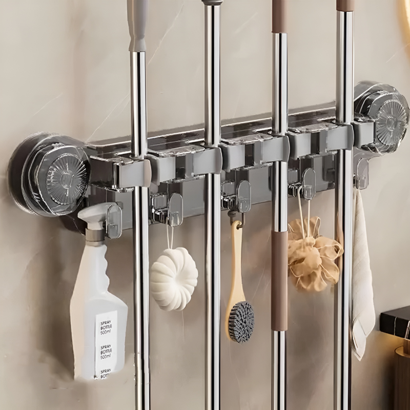 Transform your home organization with the Suction Mop Clip Transparent Wall Organizer with Hooks. This sleek, transparent unit utilizes advanced suction technology to provide a stable, heavy-duty hold on smooth surfaces without the need for tools or screws. Its "all-over-the-house" design makes it the ideal companion for your kitchen, bathroom, or laundry room, keeping your cleaning tools tidy and easily accessible.