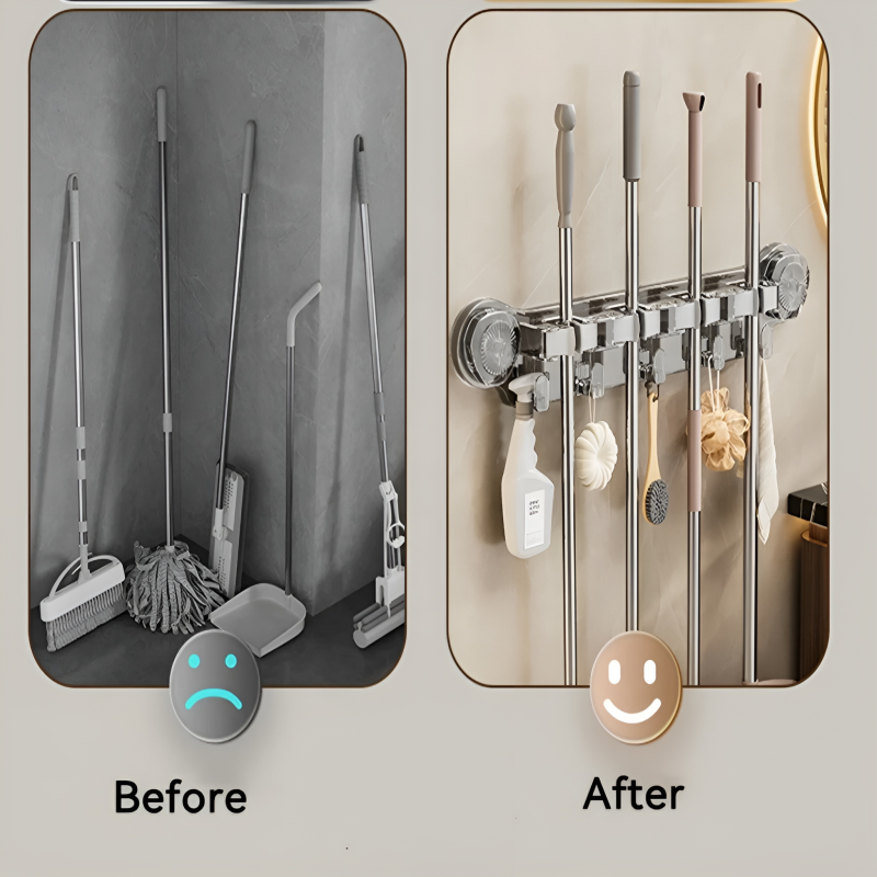 This organizer is the ultimate renter-friendly solution for a cluttered home. It eliminates the mess of leaning brooms and mops while protecting your walls from permanent damage. With its professional-grade suction and multi-functional design, it provides an organized, clean look for any room in just seconds.