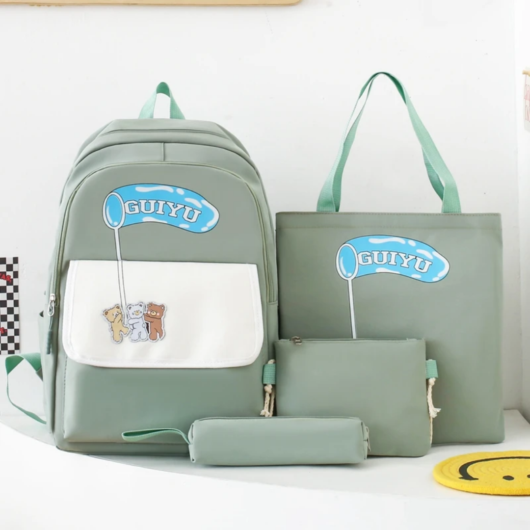 Upgrade your school style with this versatile 4-in-1 school bag set. Designed for students who value both fashion and functionality, this coordinated set features a trendy aesthetic with adorable bear graphics. Whether you are heading to class, the library, or a weekend outing, this set provides the perfect carrying solution for all your essentials while keeping you organized and stylish.