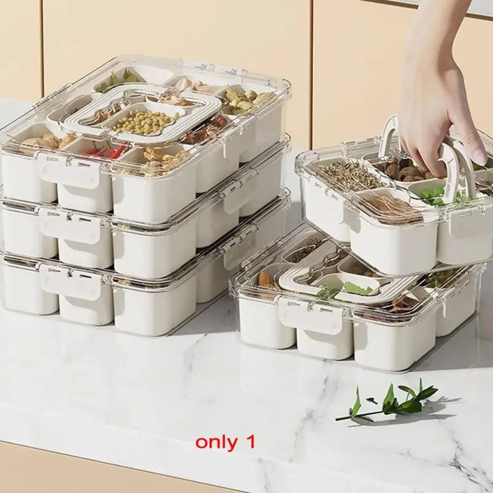 This is the "Pro" version of kitchen organization. The combination of dual carry handles and nine separate compartments makes it the most robust and versatile storage unit available. It eliminates clutter, reduces food waste, and serves as a beautiful, portable serving tray for any occasion.