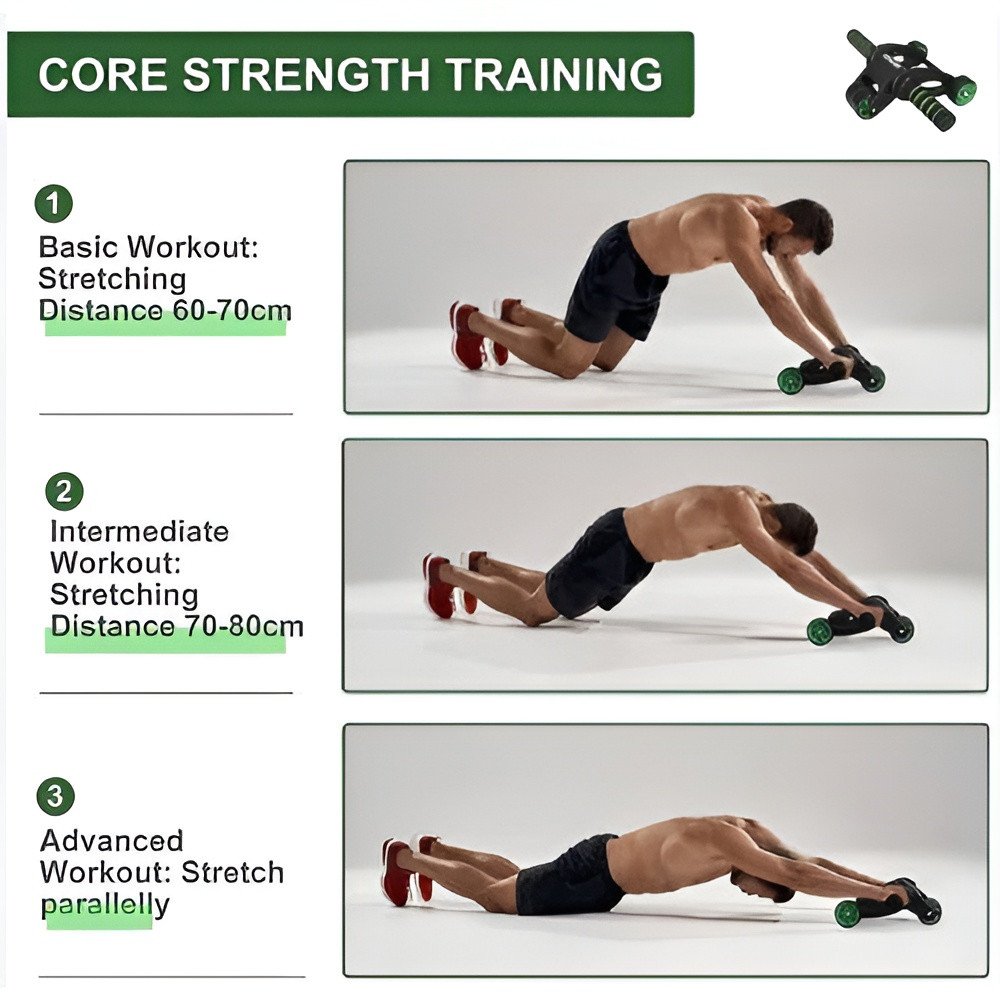 Achieve a powerful and defined core with the Ultimate Quad-Wheel Core Roller. This advanced fitness tool is meticulously designed to provide maximum stability compared to traditional single wheels. It allows you to perform deep abdominal stretches and strengthening exercises with professional precision whether you are a beginner or an advanced athlete.