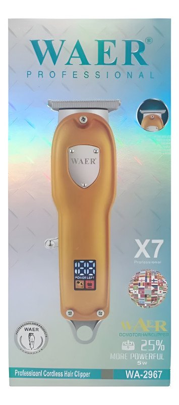 Elevate your grooming game with the WAER Professional X7 WA-2967 Hair Clipper. This upgraded model is engineered for durability and precision, featuring high-quality stainless steel blades that glide through all hair types. With its "25% More Powerful" motor and intelligent LED display, it provides a consistent, salon-quality performance for fades, outlines, and full haircuts.