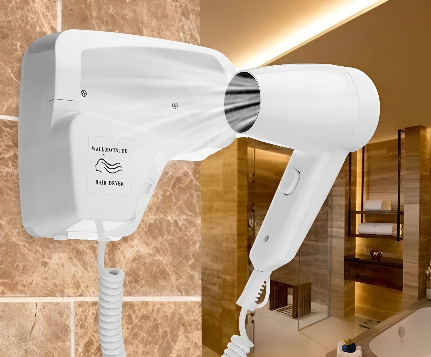 Experience efficiency and convenience with this professional wall-mounted hair dryer. Specifically designed to save space while providing powerful performance, this dryer is the gold standard for luxury hotels and modern bathrooms. It combines high-speed drying technology with advanced safety features to ensure a perfect blow-dry every time.