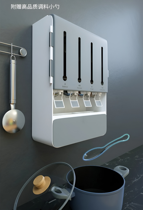 Upgrade kitchen organization with this integrated wall-mounted dispenser. This sleek unit provides a clean and efficient way to store and access essential cooking liquids and dry spices. By moving bottles off the countertop, it creates a clutter-free cooking environment while keeping everything within arm's reach.